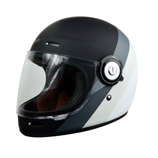 Casco de moto integral perfecto para todo amante de lo retro, se caracteriza por su calota de fibra de vidrio lo que lo hace muy cómodo de llevar. Su pantalla tiene tratamiento anti UV y anti rayas ademas de tener un bloqueo de pantalla para que no se pueda subir cuando lo estamos usando. Básicamente el compañero perfecto para nuestras largas rutas moteras.