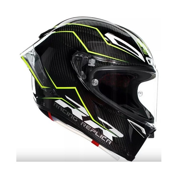 Casco Agv Pista GP RR E2206. El nuevo Pista GP RR está homologado según las normas de carreras de la FIM y la nueva normativa ECE 22.06. El casco racing desarrollado en MotoGP, ahora disponible para todos los pilotos. Se trata del mismo casco utilizado por los pilotos profesionales de AGV en Moto GP y Superbikes. Su calota exterior 100% realizada en fibra de carbono, ofrece unas líneas que minimizan la interferencia con el mono de competición y su interior con ajuste adaptable, evita las costuras en las zonas más sensibles. Dispone de ventilaciones metálicas desarrolladas en MotoGP y de spoiler trasero para mejorar las prestaciones aerodinámicas y la estabilidad a alta velocidad. Cada detalle ha sido diseñado para asegurar el máximo rendimiento.