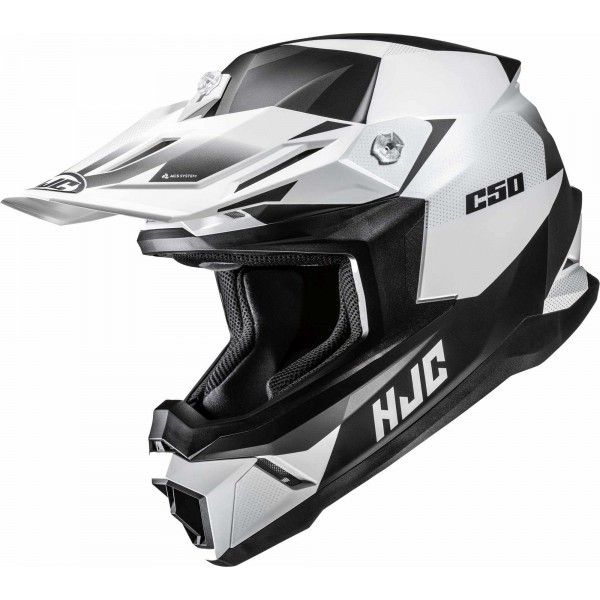 El casco off-road C50 está fabricado en compuesto avanzado de policarbonato (Advanced Polycarbonate Compound), desarrollado mediante la combinación de policarbonato de alta calidad con ABS de gran resistencia al impacto. Este material ofrece una estructura ligera y resistente, optimizada para la conducción fuera de carretera. El diseño ha sido probado en túnel de viento para mejorar la estabilidad y reducir la resistencia aerodinámica. Incorpora el sistema de ventilación ACS (Advanced Channeling Ventilation System) que canaliza el aire de adelante hacia atrás, expulsando el calor y la humedad para mantener un confort óptimo en condiciones exigentes.