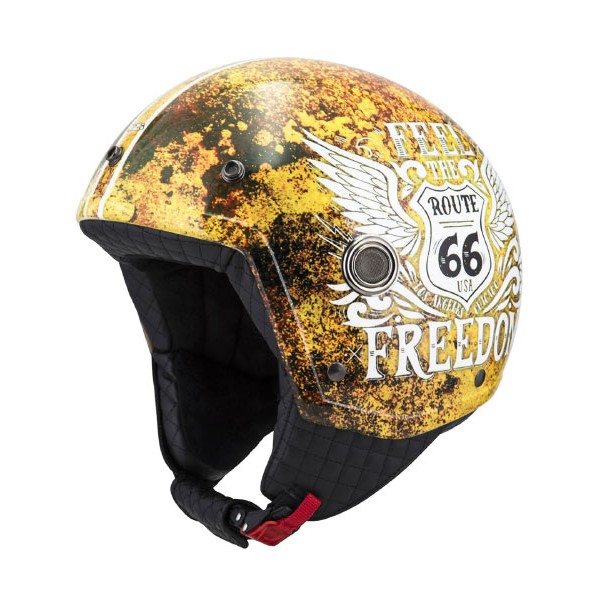 Casco jet de alta gama Tonup homologado y ligero para los que convierten al motociclismo en un estilo de vida. Hacer una tonelada era argot Inglés para describir a quien conducía a una velocidad de 100 mph (160 km h) o más. Un caso de termo-plástico Nugema.
