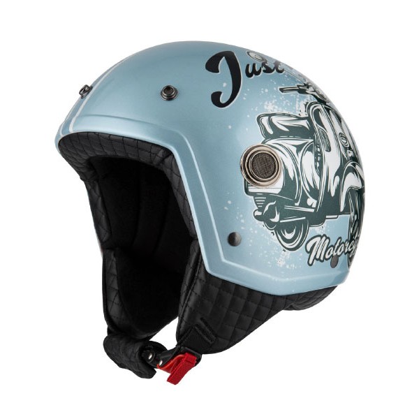Casco jet de alta gama Tonup homologado y ligero para los que convierten al motociclismo en un estilo de vida. Hacer una tonelada era argot Inglés para describir a quien conducía a una velocidad de 100 mph (160 km h) o más. Un caso de termo-plástico Nugema.