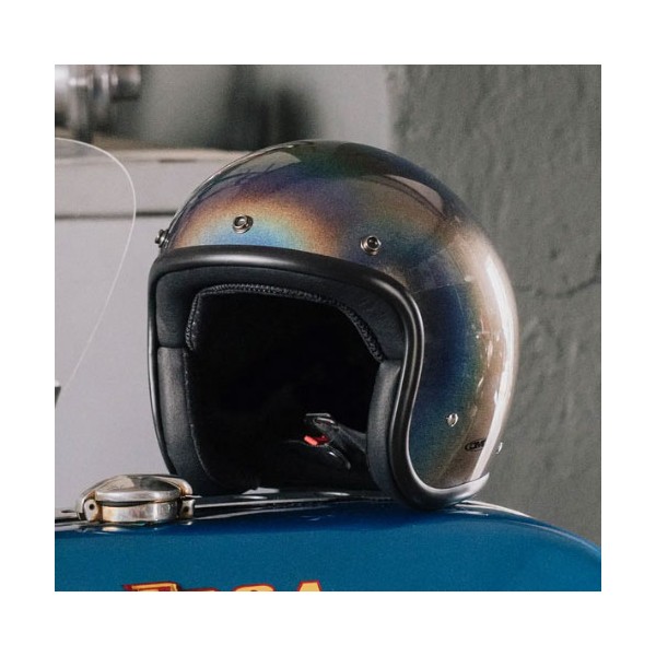 El casco jet Retro está fabricado íntegramente en fibra de vidrio.
