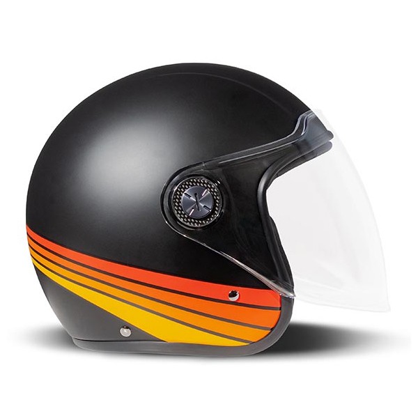 A diferencia del modelo Retro de DMD, el P1 06 incorpora una visera larga, transparente y antirrayas que, gracias a su sistema de fijación, es completamente desmontable si deseas quitártela y obtener un casco abierto vintage sin visera.