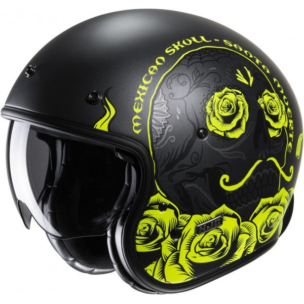 Casco HJC V31: Casco jet de look retro-moderno homologado según la nueva normativa ECE 22.06. Destaca por ser muy compacto y ligero. Fabricado en fibra de vidrio, dispone de visor solar integrado y de acolchados interiores muy confortables con acabado en cuero y ante cosido. Destaca por ofrecer un ajuste envolvente muy confortable.
