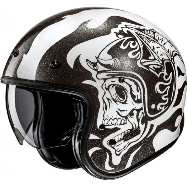 Casco HJC V31: Casco jet de look retro-moderno homologado según la nueva normativa ECE 22.06. Destaca por ser muy compacto y ligero. Fabricado en fibra de vidrio, dispone de visor solar integrado y de acolchados interiores muy confortables con acabado en cuero y ante cosido. Destaca por ofrecer un ajuste envolvente muy confortable.
