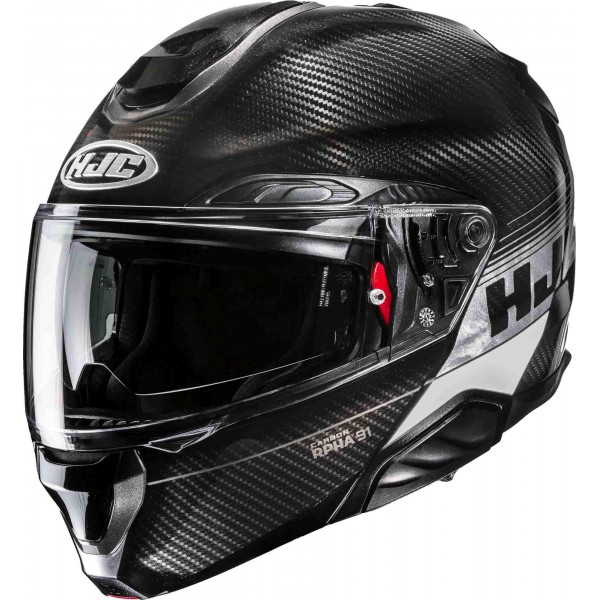 La nueva pantalla HJ-37 del Casco Modular HJC RPHA 91, sin distorsiones y el visor solar HJ-V17 proporcionan una visión periférica clara para el piloto. Diseñado para conseguir la perfección, el sistema de cierre de la mentonera cuenta ahora con un punto de cierre oculto que permite un contacto suave y una menor presión en la zona de las mejillas.
