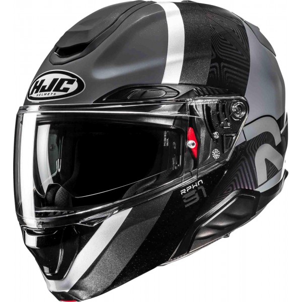 La nueva pantalla HJ-37 del Casco Modular HJC RPHA 91, sin distorsiones y el visor solar HJ-V17 proporcionan una visión periférica clara para el piloto. Diseñado para conseguir la perfección, el sistema de cierre de la mentonera cuenta ahora con un punto de cierre oculto que permite un contacto suave y una menor presión en la zona de las mejillas.