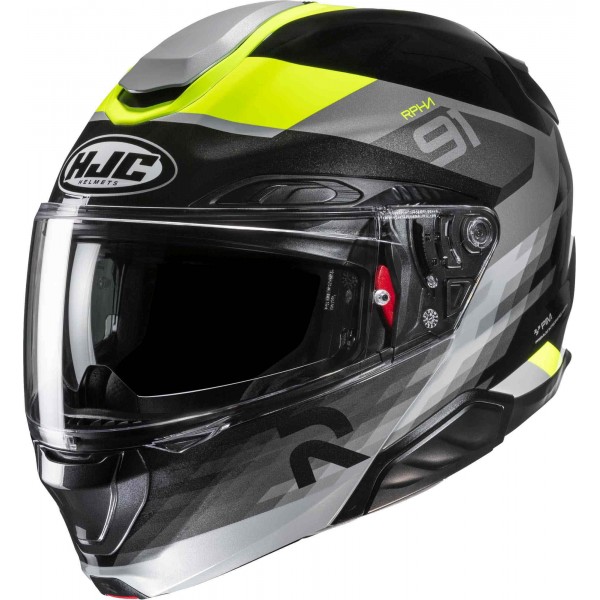 La nueva pantalla HJ-37 del Casco Modular HJC RPHA 91, sin distorsiones y el visor solar HJ-V17 proporcionan una visión periférica clara para el piloto. Diseñado para conseguir la perfección, el sistema de cierre de la mentonera cuenta ahora con un punto de cierre oculto que permite un contacto suave y una menor presión en la zona de las mejillas.