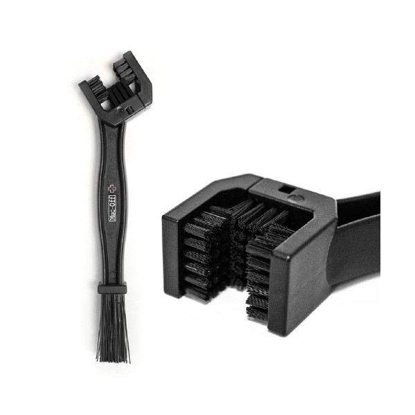 Por eso te ofrecemos este nuevo cepillo de alta calidad con doble función: un lado con forma de C y 3 minibrochas que se ajustan a la perfección a cualquier cadena, y una brocha en el lado inferior del mango para acceder a detalles y a otras partes como el piñón o la corona. Además, es la pareja ideal de nuestro limpiador de cadena Muc-Off Chain Cleaner; ambos actúan en equipo, limpiando eficaz y rápidamente.