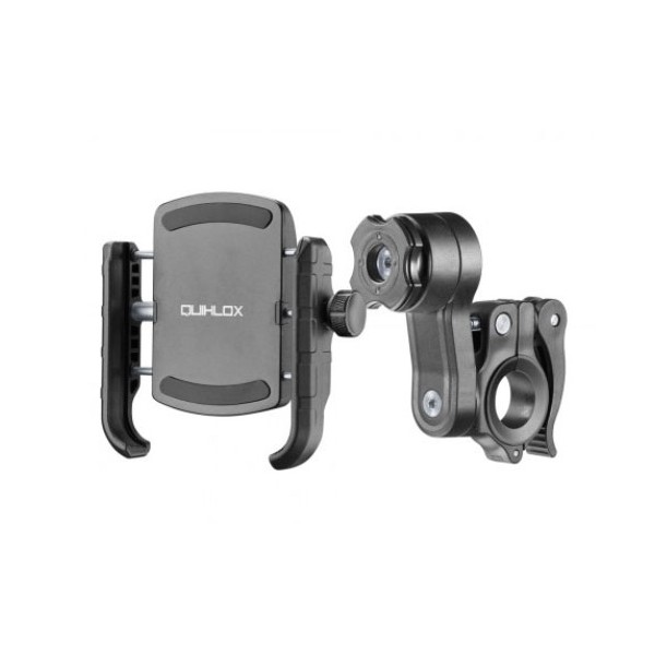 Soporte CRAB universal incluye el soporte manullar QUIKLOX SMQUIKLOXHANDLEBAR equipado con acoplamiento/desbloqueo rápido, estable y que ahorra espacio para llevar su teléfono inteligente en su moto siempre con usted en pocos pasos y con total seguridad. SMQUIKLOXCRABPROSB