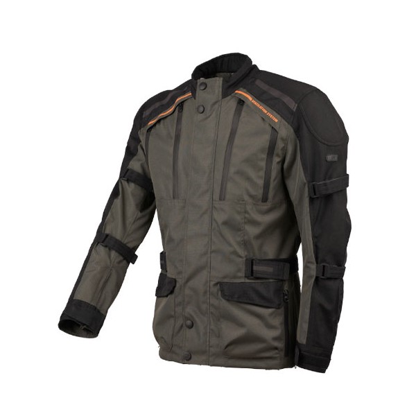 Chaqueta By City Africa. Esta chaqueta urbana con una estética touring te permitirá moverte tanto por ciudad como explorar nuevos horizontes. Está confeccionada en Cordura 600D de alta resistencia a la abrasión y cuenta con un forro térmico desmontable y una membrana impermeable Hipora® que te aportará la protección adecuada durante los meses más fríos del año. Incorpora protecciones desmontables Flexishock en los codos y hombros y tiene predisposición para montar protector dorsal (no incluido). Dispone de varias zonas regulables para un ajuste óptimo y personalizado y sistema de unión chaqueta-pantalón. Cierre mediante cremallera delantera YKK®.