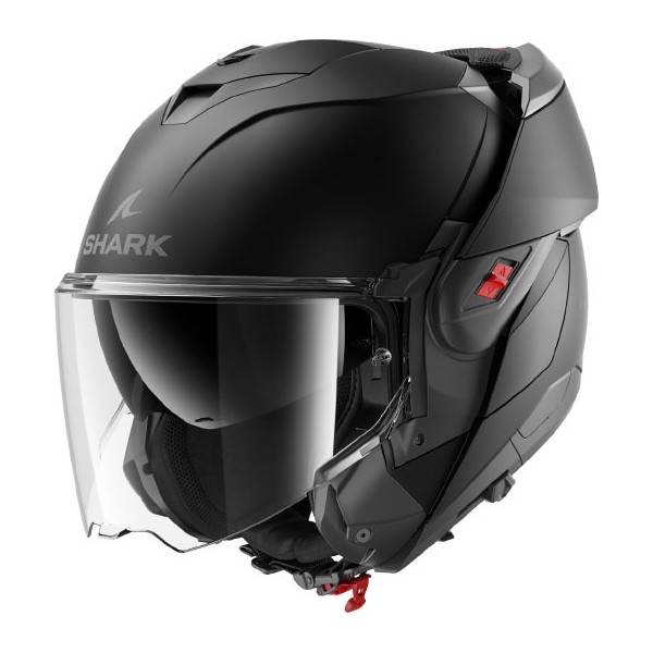 Casco Shark Oxo. El casco modular OXO destaca por su diseño innovador que permite transiciones rápidas entre los modos integral y jet, con homologación 22-06 y P/J. Fabricado en material LEXAN™ de alta resistencia y EPS multidensidad, garantiza seguridad y durabilidad. El diseño aerodinámico Flip-back optimiza la velocidad, estabilidad y minimiza las turbulencias, mientras que la amplia pantalla y visor solar integrado aseguran una visibilidad óptima. Incluye un sistema de ventilación eficiente para evacuar el calor y ofrece predisposición para el sistema de comunicación SENA for SHARK (no incluido).