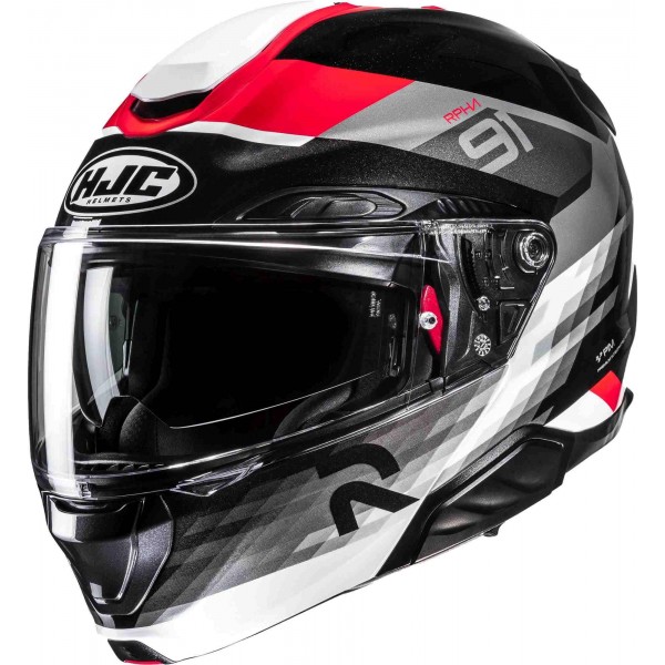 La nueva pantalla HJ-37 del Casco Modular HJC RPHA 91, sin distorsiones y el visor solar HJ-V17 proporcionan una visión periférica clara para el piloto. Diseñado para conseguir la perfección, el sistema de cierre de la mentonera cuenta ahora con un punto de cierre oculto que permite un contacto suave y una menor presión en la zona de las mejillas.