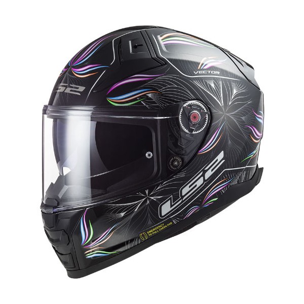 Casco LS2 Vector II. Casco integral fabricado en un compuesto de 3 fibras. Homologación ECE 22.06. Dispone de pantalla con predisposición para pinlock (incluido) y visor solar integrado. Cuenta con sistema de extracción de emergencia.