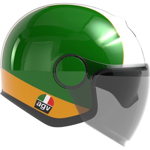 Casco AGV Eteres. Casco tipo jet de uso urbano fabricado con resina termoplástica de alta calidad y resistencia. Dispone de una amplia pantalla que permite tener un gran campo de visión. Visor solar para la protección de los rayos UV, desmontable sin necesidad de utilizar herramientas. Sistema de ventilación mediante entrada de aire ajustable en la parte superior de la calota. Acolchados interiores Dry Speed desmontables y lavables. Almohadillas de las mejillas intercambiables. Compatible con el uso de gafas y predisposición para instalar intercomunicador (no incluido). Cierre micrométrico.