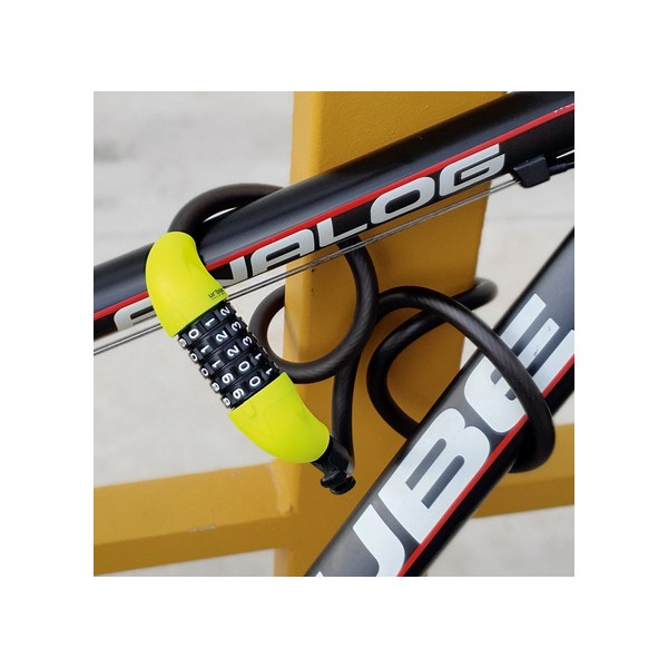 Con su llamativo color y su diseño lo puedes utilizar para inmovilizar bicis, motos, scooters, para cerrar vallados, portones, etc… Tiene una longitud suficiente para bloquear la rueda y el cuadro de la bici a una valla.
