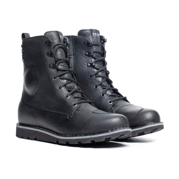 Las Combat Boots Hero 2 Waterproof son totalmente impermeables gracias a la membrana T-DRY, por lo que se pueden llevar todo el año en tráfico urbano y turismo. Las Hero 2 Waterproof combinan la máxima comodidad al conducir y caminar con un alto nivel de protección: tobillo, puntera y talón cuentan con refuerzos. La parte superior está hecha de cuero de grano completo. La suela está conectada con una costura y tiene un perfil texturizado que garantiza un agarre perfecto en cualquier tipo de superficie. El sistema de cierre consiste en un cordón y una cremallera lateral cubierta por una correa Velcro, lo que facilita aún más la puesta y el despegue. El cuello de zapato moldeado y una junta acolchada sobre el talón proporcionan una mayor comodidad.