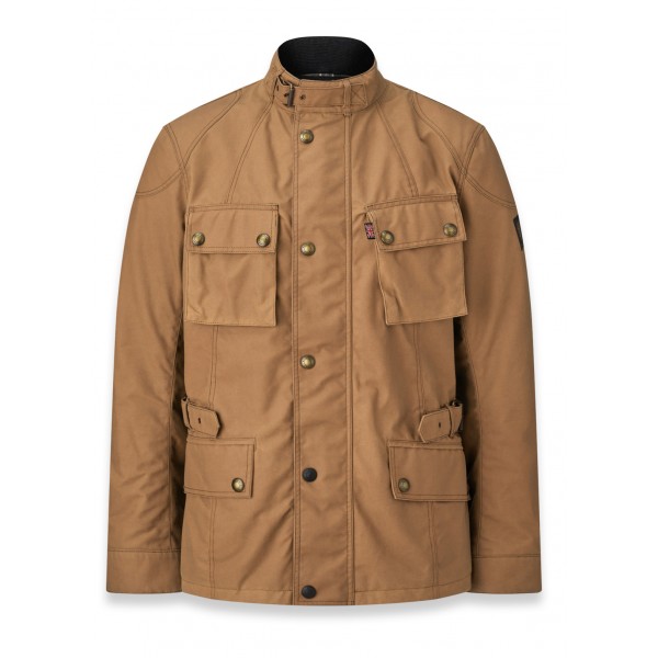 La chaqueta Crosby, larga hasta la cadera y con costuras con forma en los laterales, es ligera pero resistente gracias al algodón encerado técnico de 226 g, de la fábrica textil británica Millerain, que mantiene las inclemencias climáticas a raya. La comodidad está garantizada gracias a las hebillas de ajuste en la cintura y a una capa interna de membrana impermeable y transpirable; entre las prestaciones se seguridad se incluyen protectores D3O en hombros y codos. Las puntadas de aguja doble y la pana resistente a la grasa en cuello y puños garantizan su resistencia; el forro a cuadros del archivo histórico y los cierres grabados de latón antiguo aportan un toque clásico.